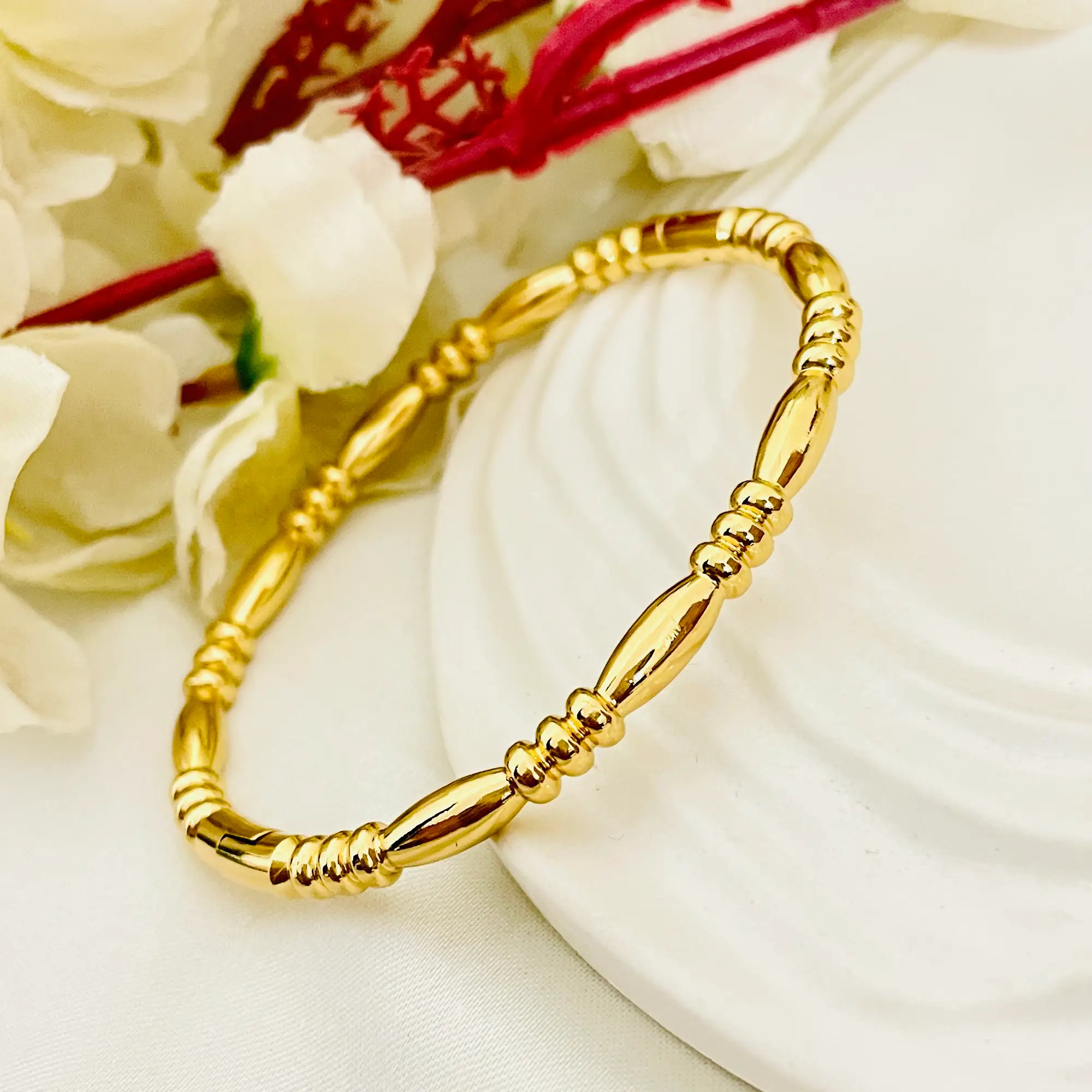 The beaded bamboo pattern creates a rich and premium aesthetic, making it perfect for daily wear, office outfits, festive occasions, and parties. Wear it alone for a minimal look or stack it with other bangles for a trendy layered style.
