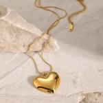 Crafted from high-quality alloy material with premium gold plating, this necklace offers a rich shine and lightweight comfort. The big heart pendant symbolizes love, confidence, and timeless beauty, making it perfect for daily wear, parties, date nights, and special occasions.