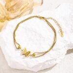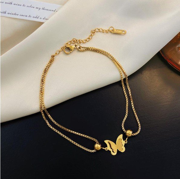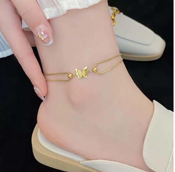Gold Butterfly Double Chain Anklet for Women is a delicate and elegant foot jewellery piece designed to add charm and grace to your look. Featuring a stylish double chain design with a beautiful butterfly charm and bead accents, this anklet gives a modern and feminine touch.