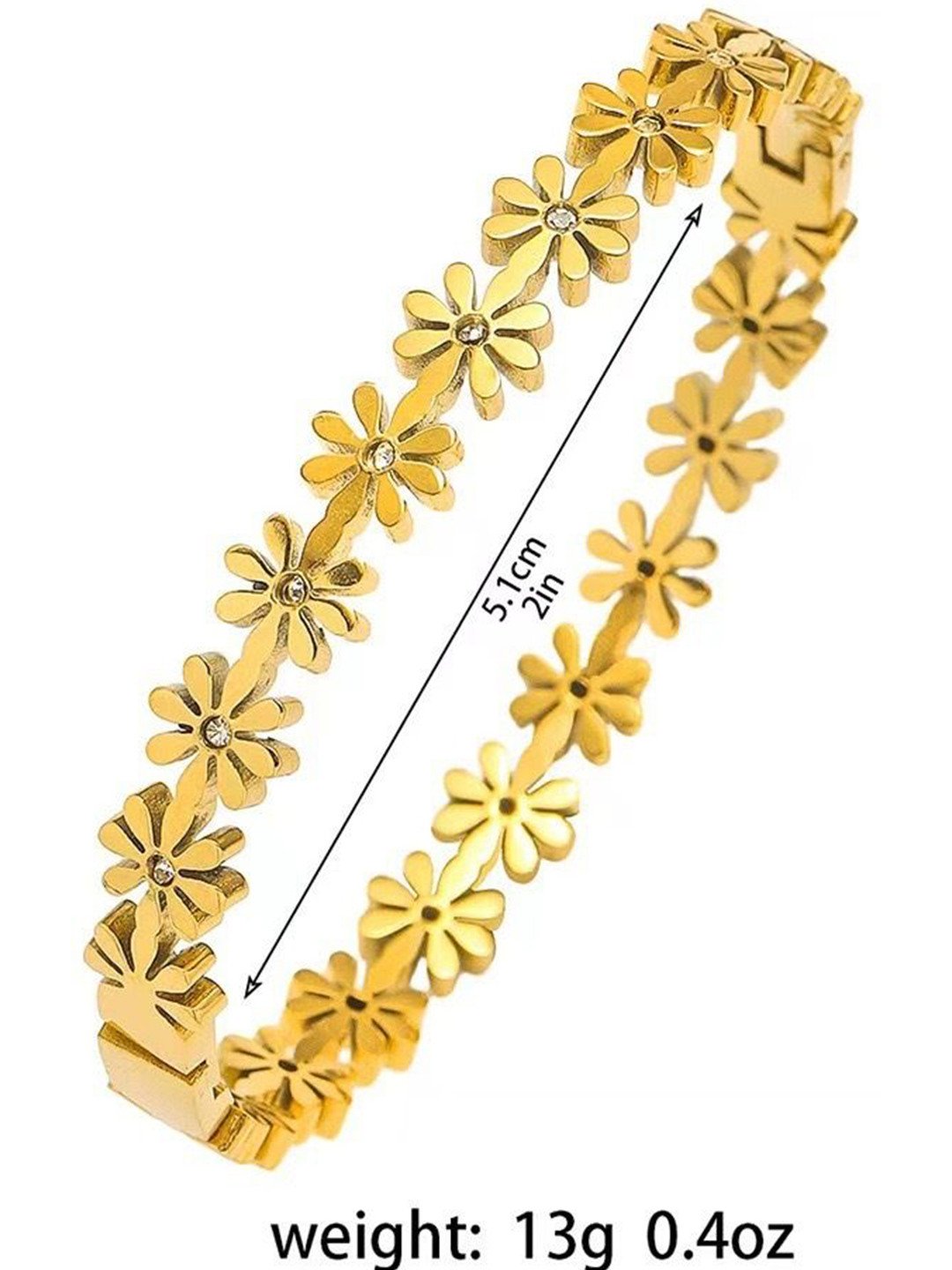 The floral design makes this bracelet perfect for daily styling, festive occasions, weddings, and special events. Whether worn alone or paired with matching jewellery, this daisy flower bangle enhances your outfit with a soft and luxurious touch.