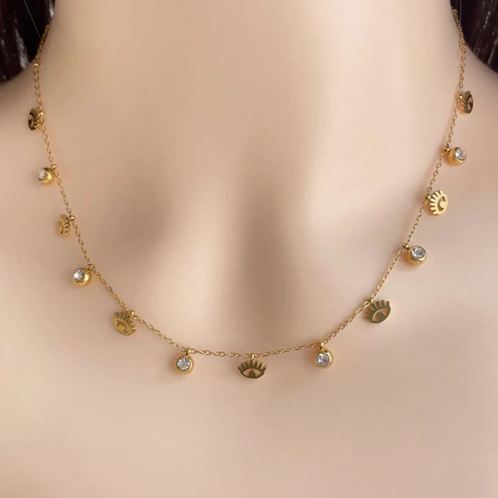 Crafted from high-quality alloy with a premium gold-plated finish, this necklace offers a rich shine and lightweight comfort. The evil eye charms symbolize protection from negative energy while adding a fashionable touch to your outfit.