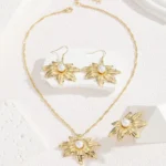 Add timeless elegance to your jewellery collection with this Gold Leaf Pearl Korean Necklace Earrings Set. Designed with a beautiful leaf-inspired texture and a delicate pearl centerpiece, this jewellery set perfectly blends nature-inspired design with modern Korean fashion.