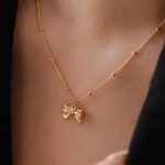 Crafted with high-quality alloy material and finished with a smooth gold-plated coating, this necklace offers a polished shine and lightweight comfort. The simple bow design symbolizes elegance, femininity, and timeless beauty, making it a perfect everyday accessory.
