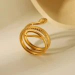 Gold Textured Snake Adjustable Statement Ring is a bold and powerful jewellery piece designed for women who love unique and edgy accessories. The detailed textured snake design wraps elegantly around the finger, symbolizing strength, transformation, and confidence.