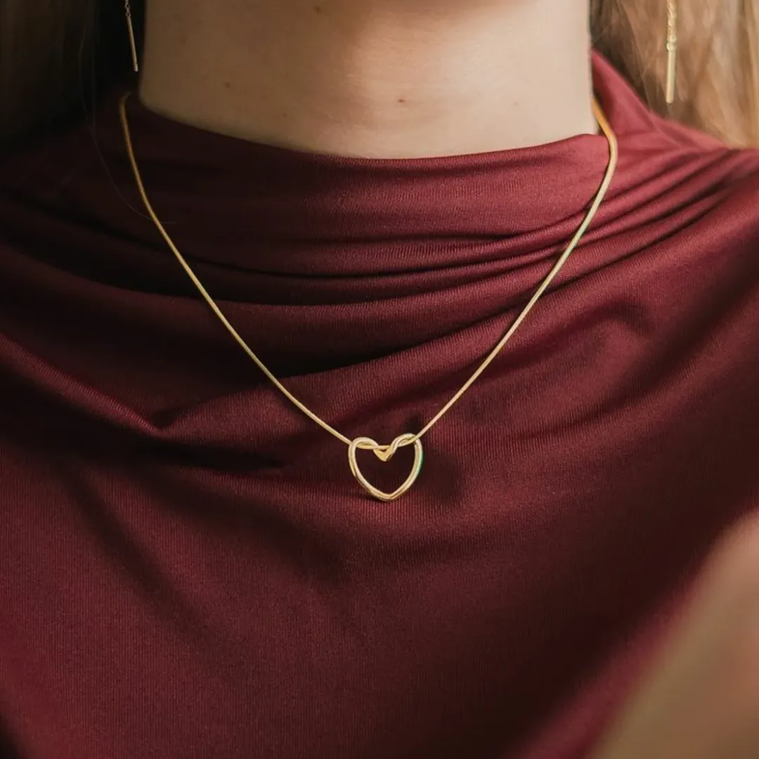 Gold Whisper Open Heart Necklace is a delicate and romantic jewellery piece designed to express elegance and love. Featuring a stylish hollow open-heart pendant, this necklace creates a minimal yet meaningful statement perfect for everyday wear.