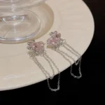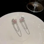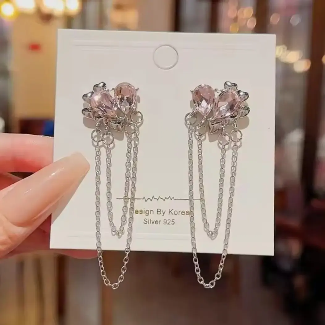 The delicate heart detailing combined with long chain drops gives a graceful movement effect, making them perfect for special occasions, parties, and stylish evening outfits. These earrings reflect modern Korean jewellery trends that focus on cute yet sophisticated styling.