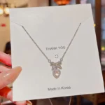 Silver Pink Heart Bow Necklace is a delicate and romantic jewellery piece designed to add charm and elegance to your everyday style. Featuring a sparkling bow knot detail paired with a soft pink heart-shaped stone pendant, this necklace creates a graceful and feminine look.